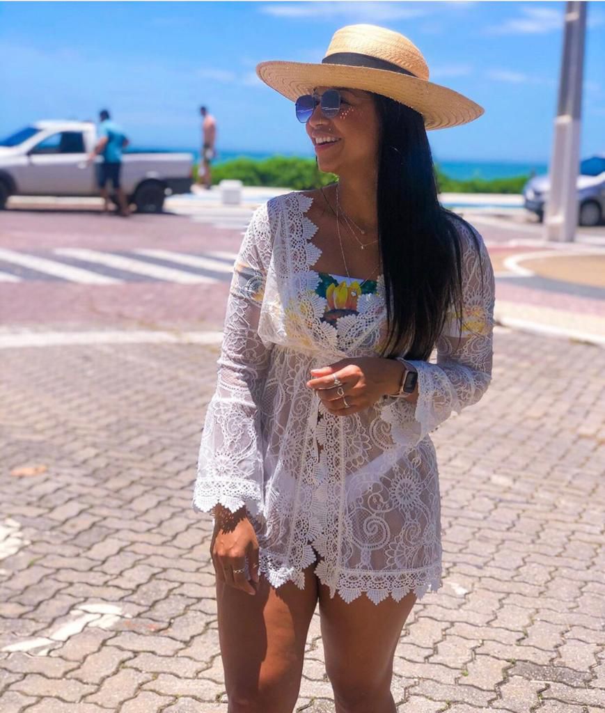 Esse modelo foi feito todo em renda, deixando a peça mais leve, estilosa e confortável! Além disso, essa peça é ideal para todos os dias de verão! Além de valorizar o corpo, a renda deixa a peça sexy e com muito estilo. A transparência também destaca o modelo de biquíni que está usando, assim sendo, perfeita para dias com sol! A renda é composta por 90% poliéster e 10% elastano, no entanto a renda deixa a saída de praia confortável e leve para aproveitar os melhores dias de sol.